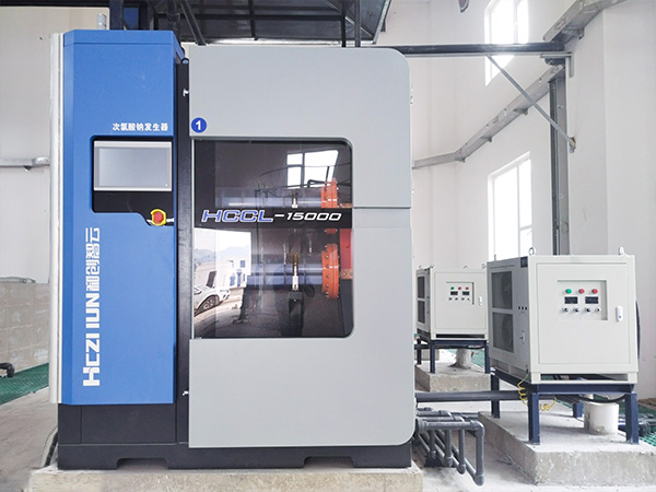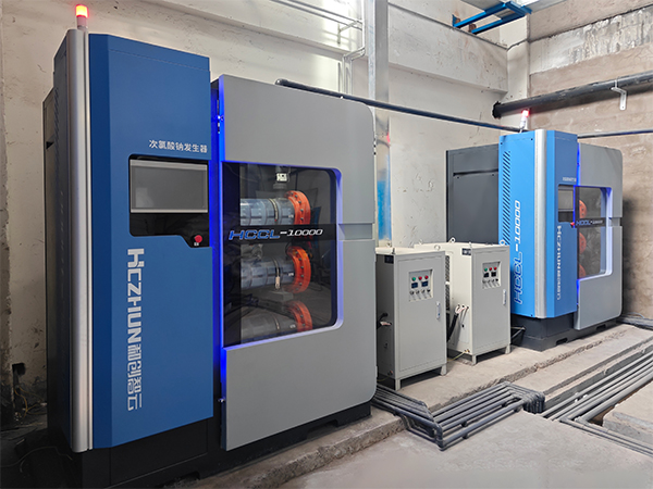 采用無(wú)隔膜電解法電解稀鹽水,在線(xiàn)制備低濃度次氯酸鈉溶液的裝置。具有原料易得、產(chǎn)物純凈、安全可靠的特點(diǎn)。適用于各類(lèi)氯化消毒水處理。